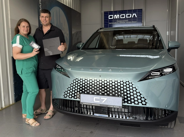 *Победитель премии «VOICE: Главные лица» 2025 в номинации «Дизайн года» 2 Указана максимальная цена перепродажи с учетом всех выгод на автомобиль OMODA C7 (ОМОДА Ц7) комплектации Joy (Джой) 1.6Turbo (Турбо) 2WD (комплектация автомобиля с наименьшей возможной стоимостью) - 2 909 900 руб. на дату 01.09.2025 г., без учета дополнительного оборудования или иных услуг, без учета предложений, программ или скидок официального дилера. Данная цена указана с учетом скидки дилера по программе «Трейд-ин» в размере 200 000 рублей. Подробности уточняйте у официальных дилеров, список которых расположен по адресу www.omoda.ru. Не является офертой. 3 0,01% - процентная ставка по акционной программе кредитования «Omoda Direct New Gold» (Омода Директ Нью Голд) для владельцев «Карта Халва» (далее – акционная программа) по продукту «АвтоСтиль-Особый» для новых автомобилей OMODA C7 2025 года выпуска. Параметры акционной программы: срок кредита – от 12 до 84 мес.; сумма кредита - от 300 000 до 9 000 000 руб.; полная стоимость кредита на момент оформления Договора – от 0,010% до 19,194% годовых, процентная ставка – от 0,01% до 13,20% годовых, первоначальный взнос – от 0% от цены приобретаемого автомобиля. Процентная ставка 0,01% действует при сроке кредита 48 мес. и первоначальном взносе от 60%. Процентные ставки по кредиту, установленные акционной программой, действуют при совершении в каждом полном отчетном периоде по «Карта Халва» в течение действия кредитного договора от 5 операций на общую сумму от 10 000 руб. В случае несоблюдения условий акции - действующая процентная ставка увеличивается на 6 процентных пунктов. Срок акции – с 20.11.2023 г. по 31.12.2025 г. Информация об организаторе акции, о правилах ее проведения, иные условия акции указаны в Паспорте акции «Автокредит с Халвой», размещенном по ссылке https://sovcombank.ru/credits/auto (вкладки «Кредитные программы»/»Акции»). Залоговое обеспечение – залог приобретаемого автомобиля. Кредит предоставляется ПАО «Совкомбанк» (генеральная лицензия Банка России № 963 от 05 декабря 2014 года). Банк вправе отказать в выдаче кредита без объяснения причин. Не является публичной офертой. 4 Фактические цвета серийных автомобилей могут отличаться от цветов, показанных на изображениях, из-за особенностей печати. Возможное сочетание цветов кузова, отделки, крыши, оборудование может быть опциональным. Наличие автомобилей, цены, цвета, модели, комплектации, оснащение и прочие подробности уточняйте у официальных дилеров OMODA, список которых расположен на сайте omoda.ru. Не является офертой. 5 OMODA - ОМОДА, С7 - Ц7, DCT7 - Ди-Си-Ти-7, R18 - Эр-18, МсPherson - МакФерсон, SQRF4J16C - Эс-Кью-эР-эФ-4-Джей-16-Си, Joy - Джой, Lifestyle - Лайфстайл, Drive - Драйв, Active - Актив, Supreme - Суприм, Isofix - Исофикс, AutoHold - АвтоХолд, Sport/Eco mode - Спорт/Эко-мод, Hands free - Хэндс Фри, Bluetooth - Блютуз, USB - Ю-Эс-Би. 6 Указан максимальный размер выгоды потребителя - 200 000 рублей, которая достигается за счет программы «Трейд-ин». Под скидкой по программе Трейд-ин понимается единовременная и разовая выгода потребителю на комплектации Joy и Lifestyle, от максимальной цены перепродажи автомобиля, приобретаемого по Программе, при сдаче в зачёт его стоимости принадлежащего потребителю любого автомобиля с пробегом. Условия программы уточняйте у официальных дилеров OMODA. 7 Фактические цвета серийных автомобилей могут отличаться от цветов, показанных на изображениях из-за особенностей печати. Возможное сочетание цветов к